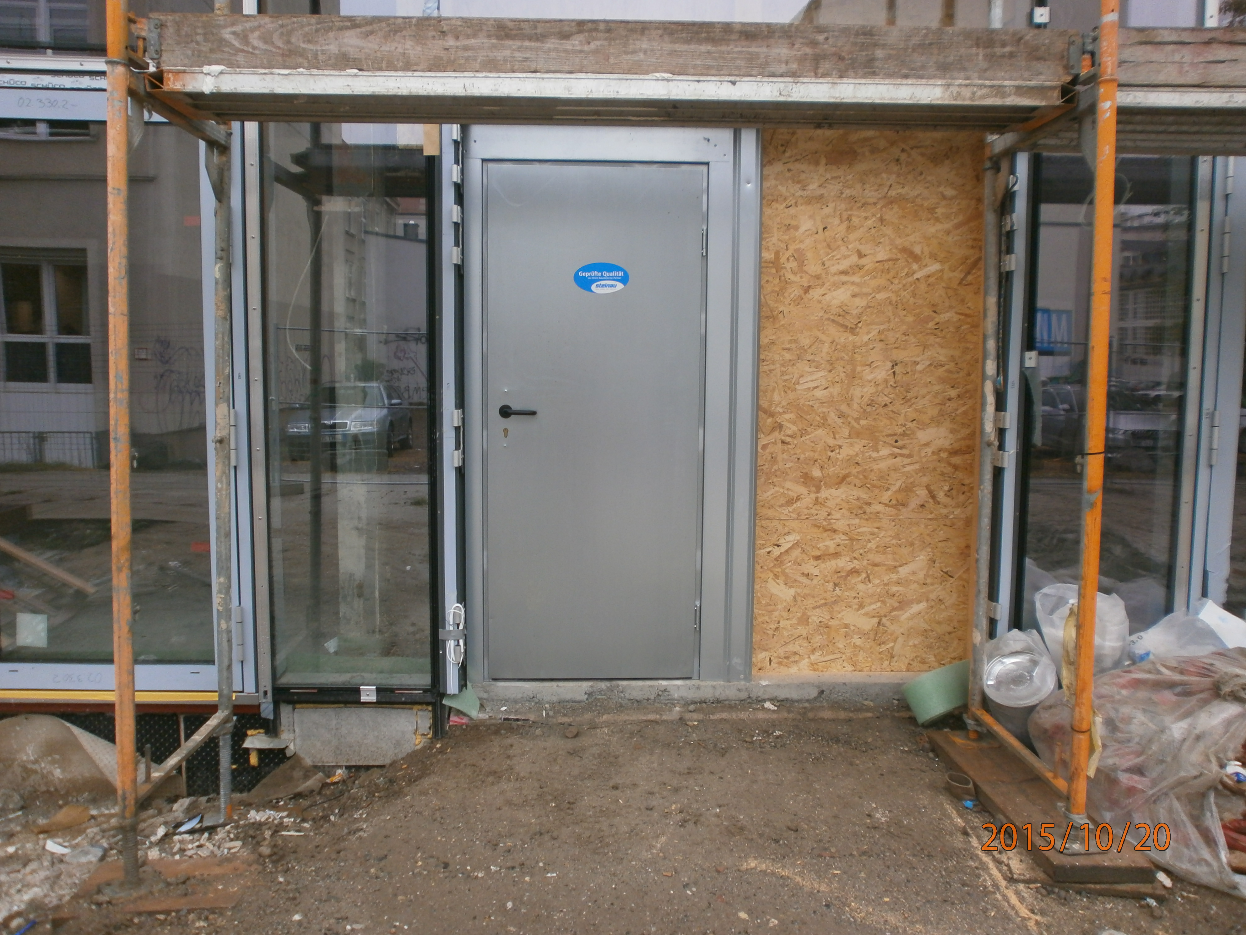 - Fußabstreiferrost, Papierkorb, Magnetstreifen, Tischlampe, Garderobenhaken und Beschilderung